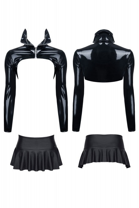 Regnes’in CRDSET005 Takımı, baştan çıkarıcı eğlence ve provokatif stil için mükemmel, heyecan verici iki parçalı bir kıyafettir. Takım, parlak bir ceket ile seksi bir wetlook mini etekten oluşur.